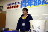 ■味噌の紹介■ 今回の主役の1つ、帰ってきた味噌だいがくで仕込んだ 2種類の極上味噌を講師を務めた目黒くんより説明 思いのほか味噌の出来がよく目黒くんも満足気!