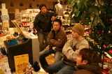 ■企画ミーティング編■ (2005.11.15) 深夜の手芸店に野郎が8人も終結 キーワードの「ニットカフェ」のビデオを見ながら ゆび編みだいがくの骨格ができあがった