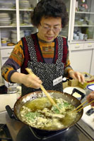 ■講義終了後、打ち上げ編■ (2007.3.19) 皆さんをお送りしたあとは、部員の賄タイム♪ 残ったネタで立ち食い天ぷら屋状態でした(笑) その夜の懇親会ですが、いつもはテーブルを占める ”揚げもの”の姿がなかったのが印象的でした(笑)